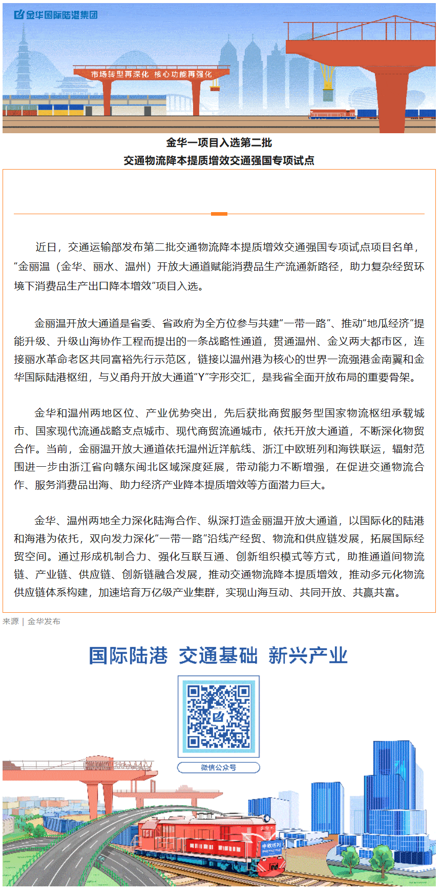 金華一項(xiàng)目入選第二批交通物流降本提質(zhì)增效交通強(qiáng)國專項(xiàng)試點(diǎn)