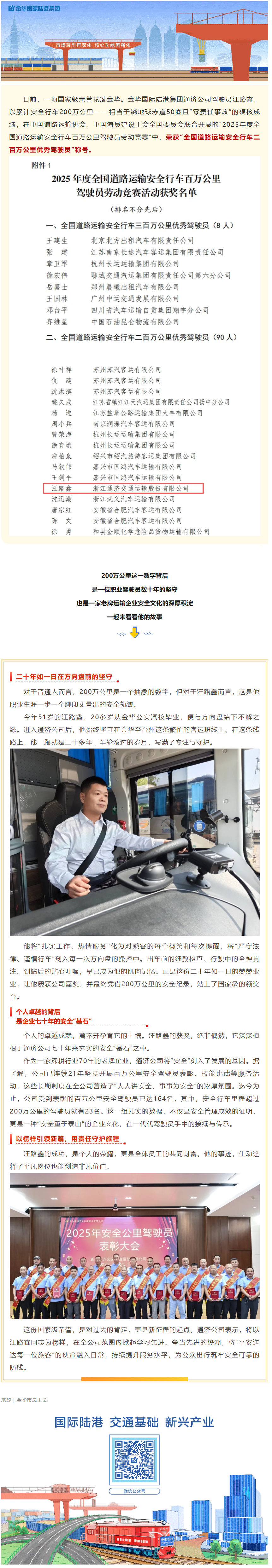 200萬公里零事故:金華司機汪路鑫駛出國家級榮譽